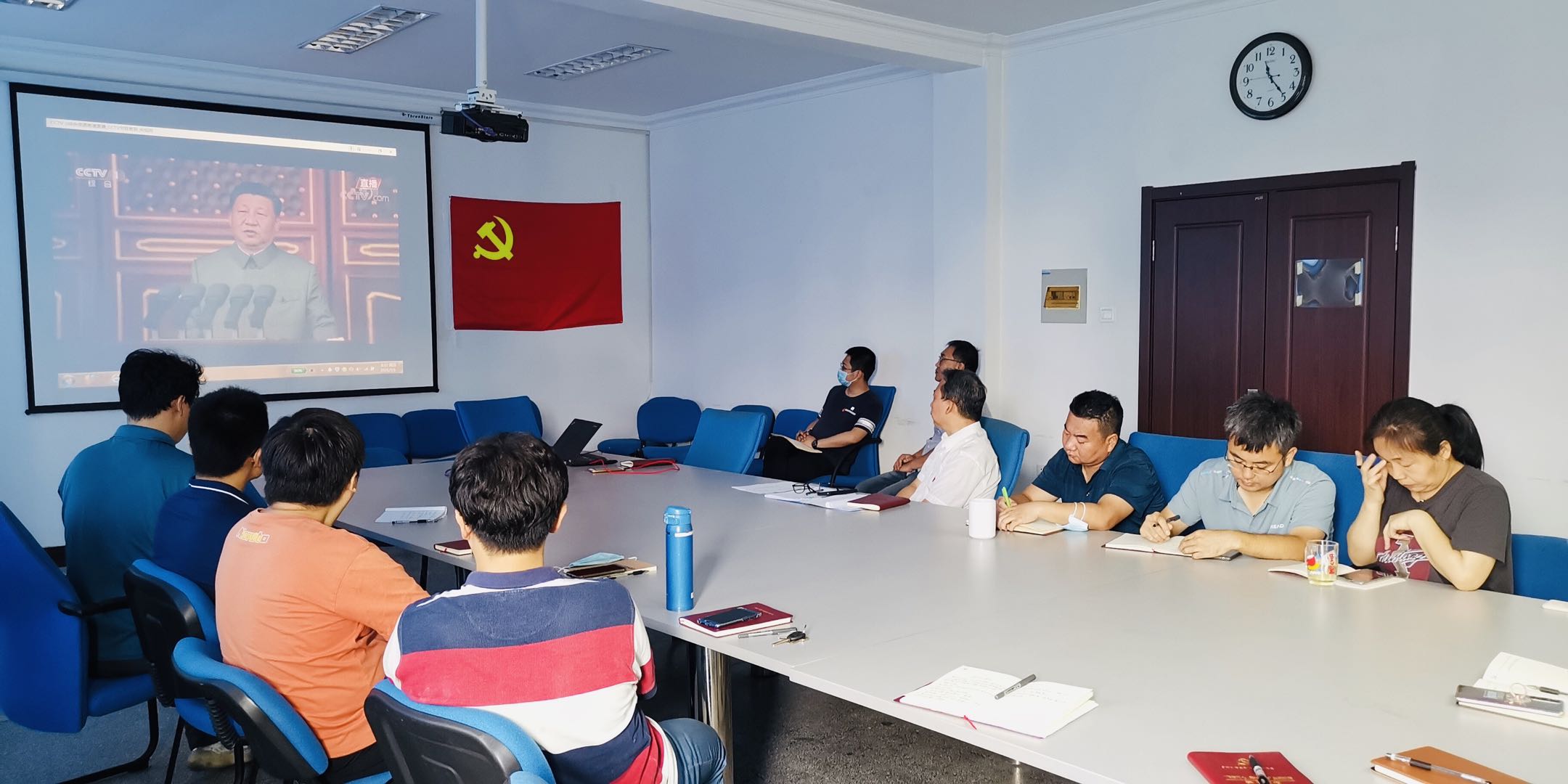 2021年7月1日上午8時整,慶祝中國共產黨成立100周年大會在北京天安門廣場隆重舉行,中共中央總書記、國家主席、中央軍委主席習近平發表重要講話。海保部黨支部在中心黃河道院315會議室組織干部職工集中收看了大會盛況。