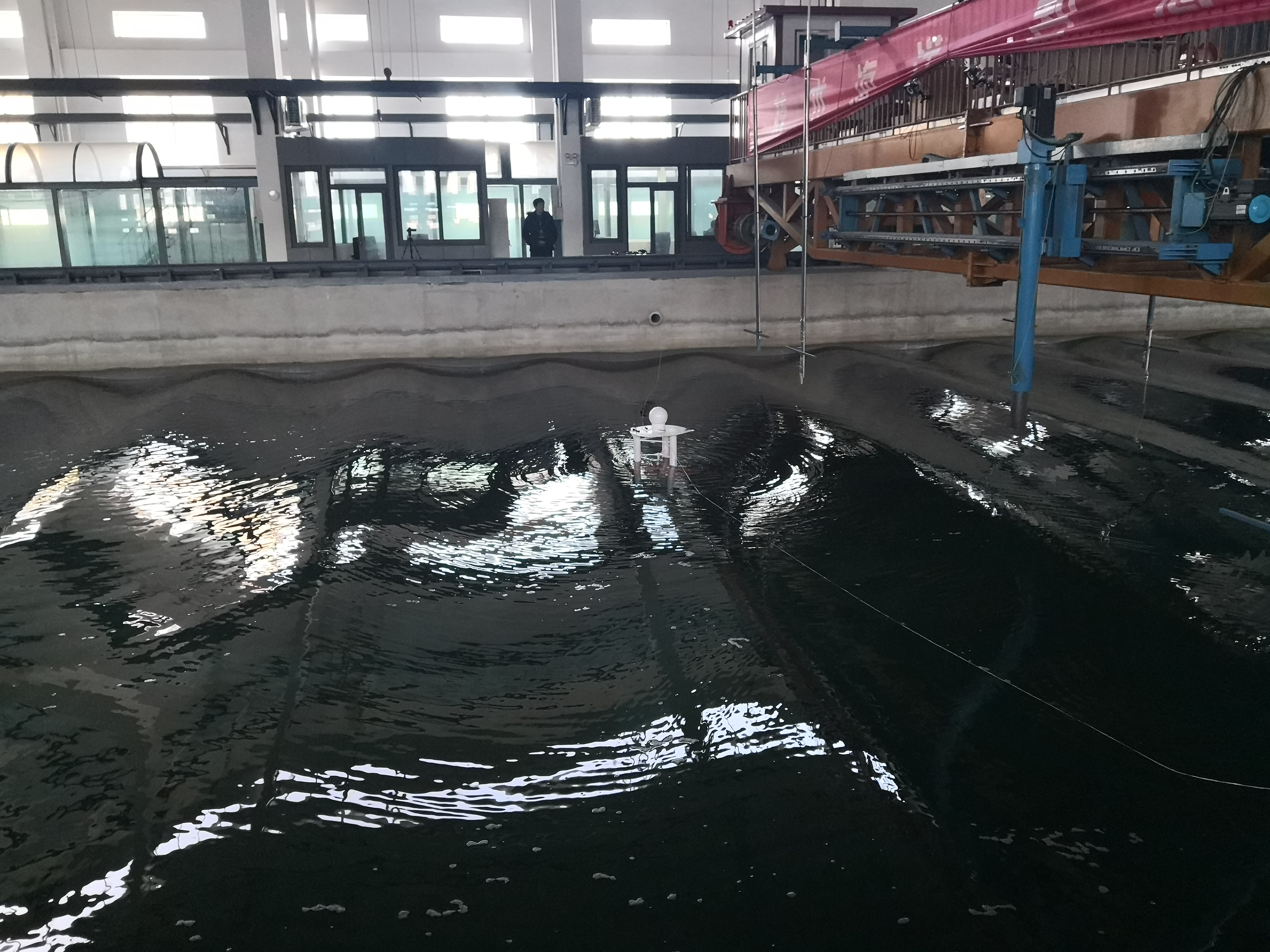 本試驗是動力環(huán)境實驗室簽署的第一個對外委托試驗合同,完全由我中心組織完成全部試驗內容,甲方并不參與試驗過程。接到試驗任務后,課題組高度重視,組織并制定了詳細的試驗方案,經與甲方充分溝通后,開始實施。目前,課題組已順利完成多功能水池的造波試驗,正在處理總計259組試驗數(shù)據(jù),并計算幅值響應因子等,編制規(guī)則波和不規(guī)則波試驗報告。下一步,計劃于2019年3月開展浮臺模型的風浪流試驗。(戰(zhàn)略室 路寬)