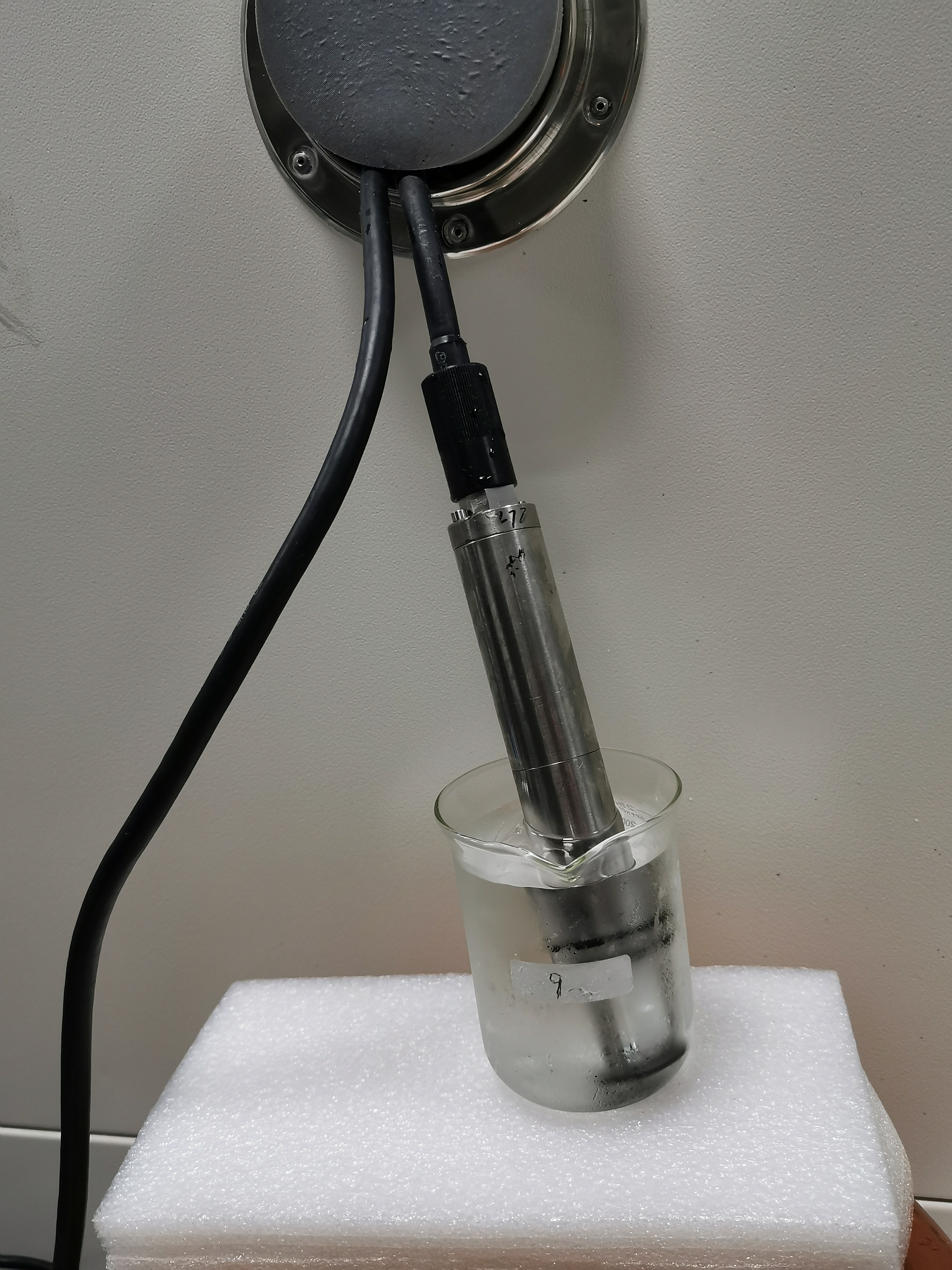 開展海洋裝備的測試方法研究和裝備性能測試評估,一直是中心重要的業務方向,尤其是在極區等極端惡劣環境條件下長期工作的極地觀測探測裝備,更需要在實際布放工作前,建立試驗環境和試驗方法,最大限度的模擬其實際工作條件,進行嚴苛的試驗考核,確保其滿足應用要求。近年來,中心布放的西風帶浮標、極區漂流浮標等裝備均歷經了這樣的反復試驗過程,在實際應用中達到了預期滿意的應用效果。本次測試的南極冰下湖多參數傳感器是國家重點研發計劃“極地環境觀測/探測技術與裝備研發”項目研究成果,作為南極冰下湖無污染鉆探系統中的科學載荷平臺關鍵傳感器,用于探測3000米冰蓋下的冰下湖這一完全未知領域的壓力、溫度、電導率和pH等參數。