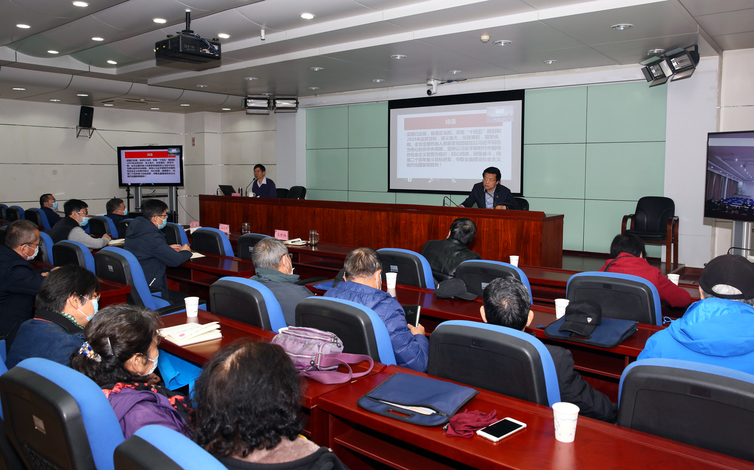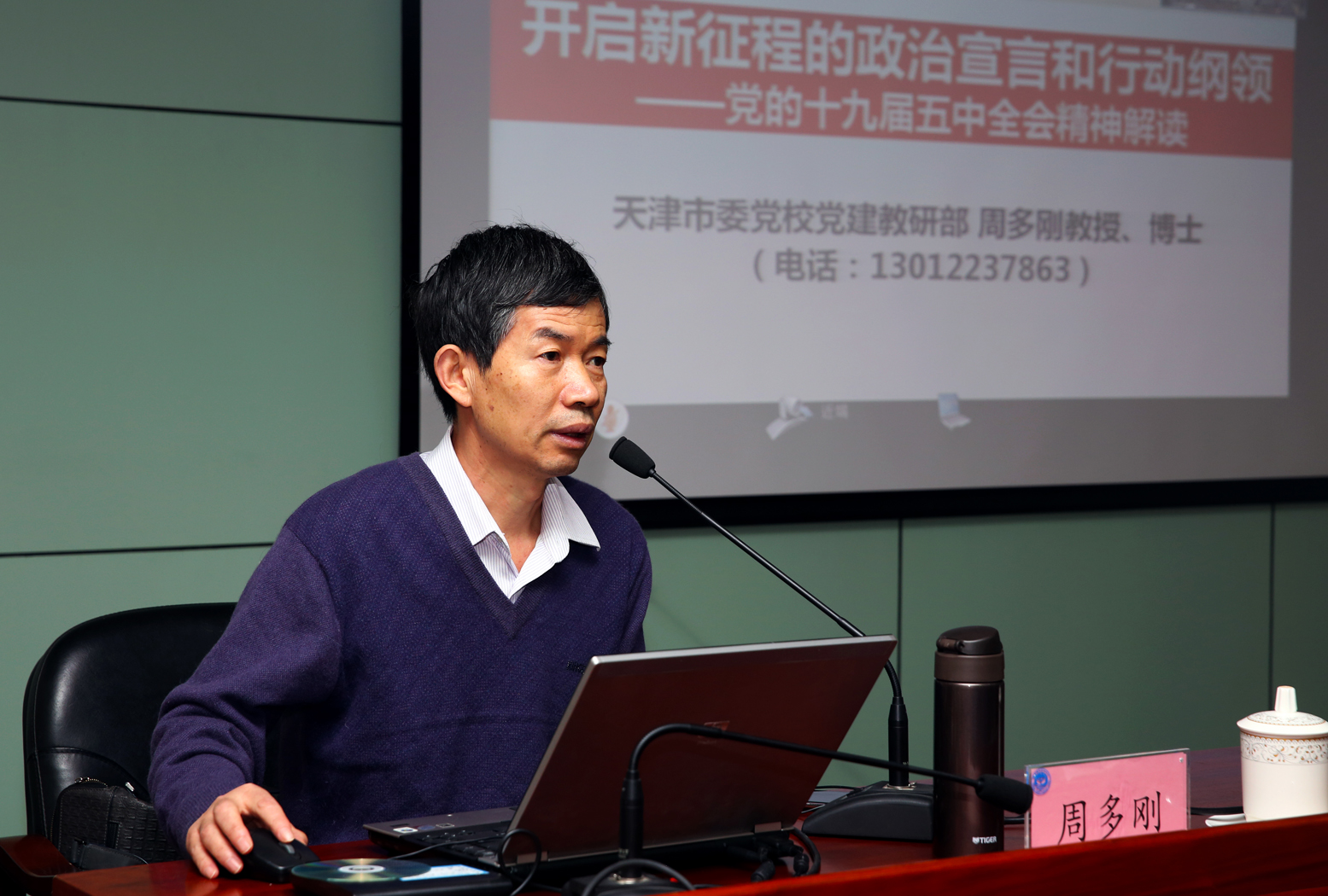 11月30日,中心舉辦專題輔導講座,學習貫徹黨的十九屆五中全會精神。天津市委黨校周多剛教授應邀到中心授課,中心全體在職干部職工和離退休黨支部書記、支委參加講座。
