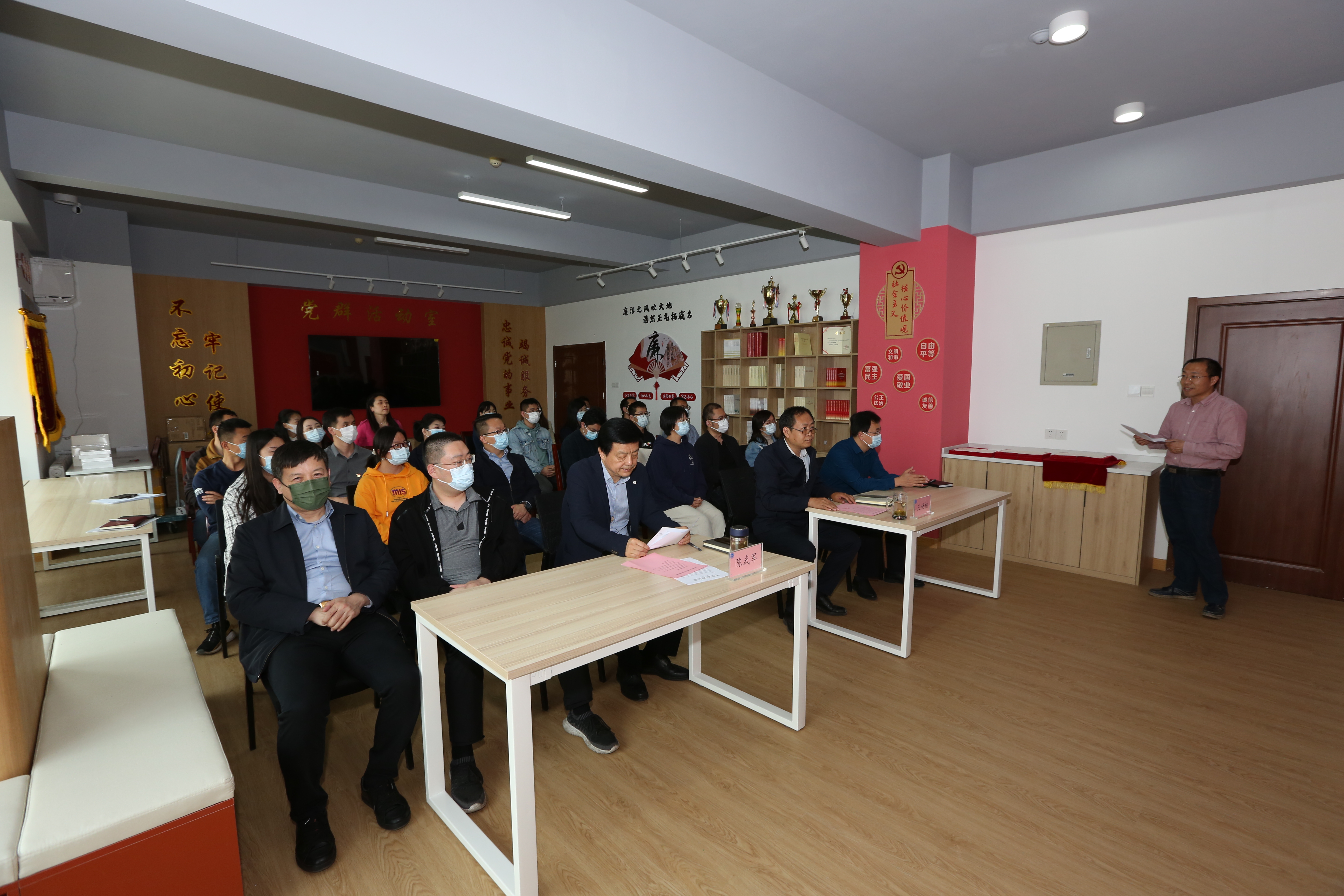 4月12日,中心在黨群活動室舉辦慶祝建黨100周年征文活動頒獎儀式,標志著改造一新的黨群活動室正式啟用。中心黨委書記陳武軍、紀委書記王世福參加活動并為征文活動獲獎者頒獎。