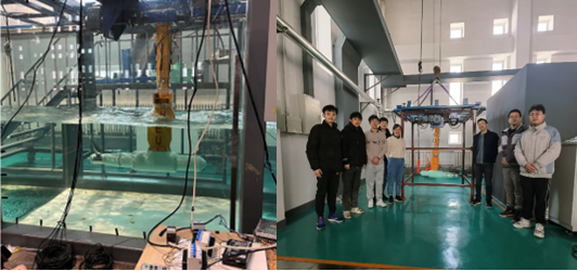 本次試驗(yàn)工作中,通過(guò)實(shí)驗(yàn)室配備的高精度Vectrino三維流速測(cè)量?jī)x、無(wú)線波高儀來(lái)實(shí)時(shí)采集并保存流速及波高數(shù)據(jù)。此外還使用了光學(xué)非接觸式六自由度測(cè)量?jī)x,在對(duì)裝置姿態(tài)不影響的情況下準(zhǔn)確測(cè)量了水輪機(jī)的六自由度運(yùn)動(dòng)數(shù)據(jù)。該試驗(yàn)工作的順利完成,不僅為潮流能水輪機(jī)的海上實(shí)際電站的工程設(shè)計(jì)提供依據(jù),也展現(xiàn)了中心對(duì)海洋能發(fā)電裝置科技創(chuàng)新與成果轉(zhuǎn)化的支撐服務(wù)能力。(試驗(yàn)場(chǎng)中心 王花梅)