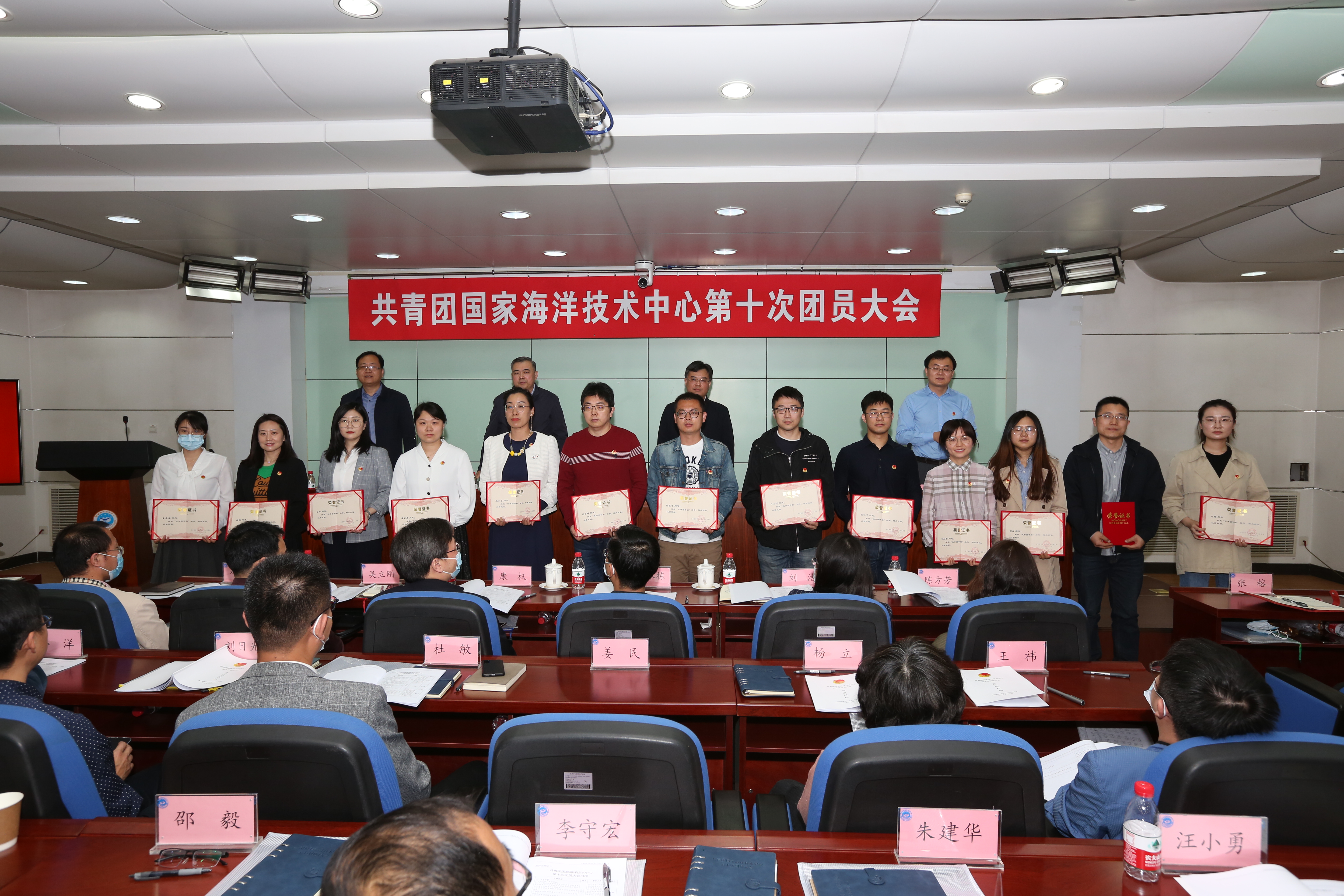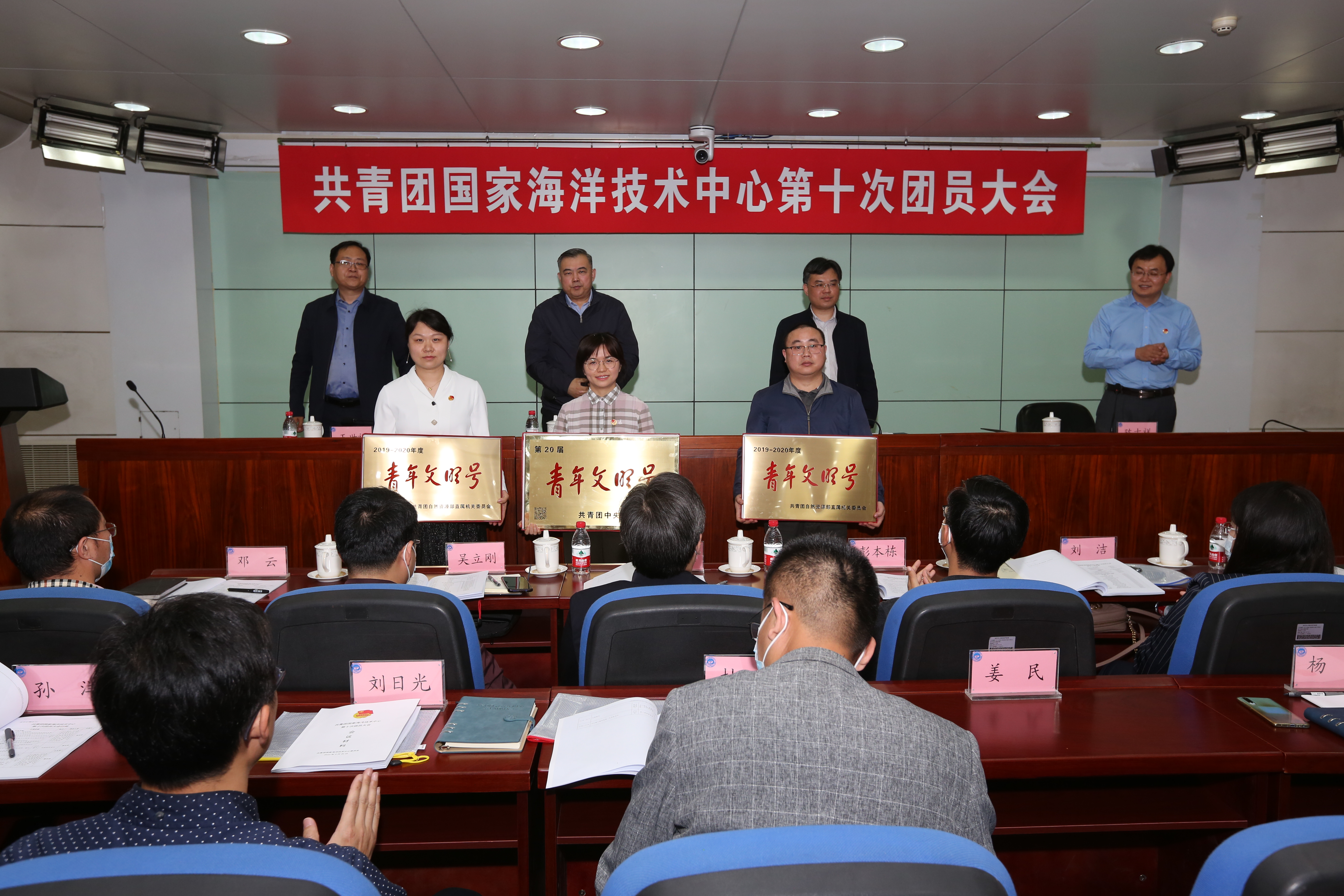 會議還進行了榮譽表彰和青年文明號授牌。中心紀委書記王世福宣讀了中心團委對第九屆團委委員和團支部書記的表彰決定以及中心創建“全國青年文明號”“部青年文明號”命名文件,中心領導頒發榮譽證書,并為“青年文明號”授牌。