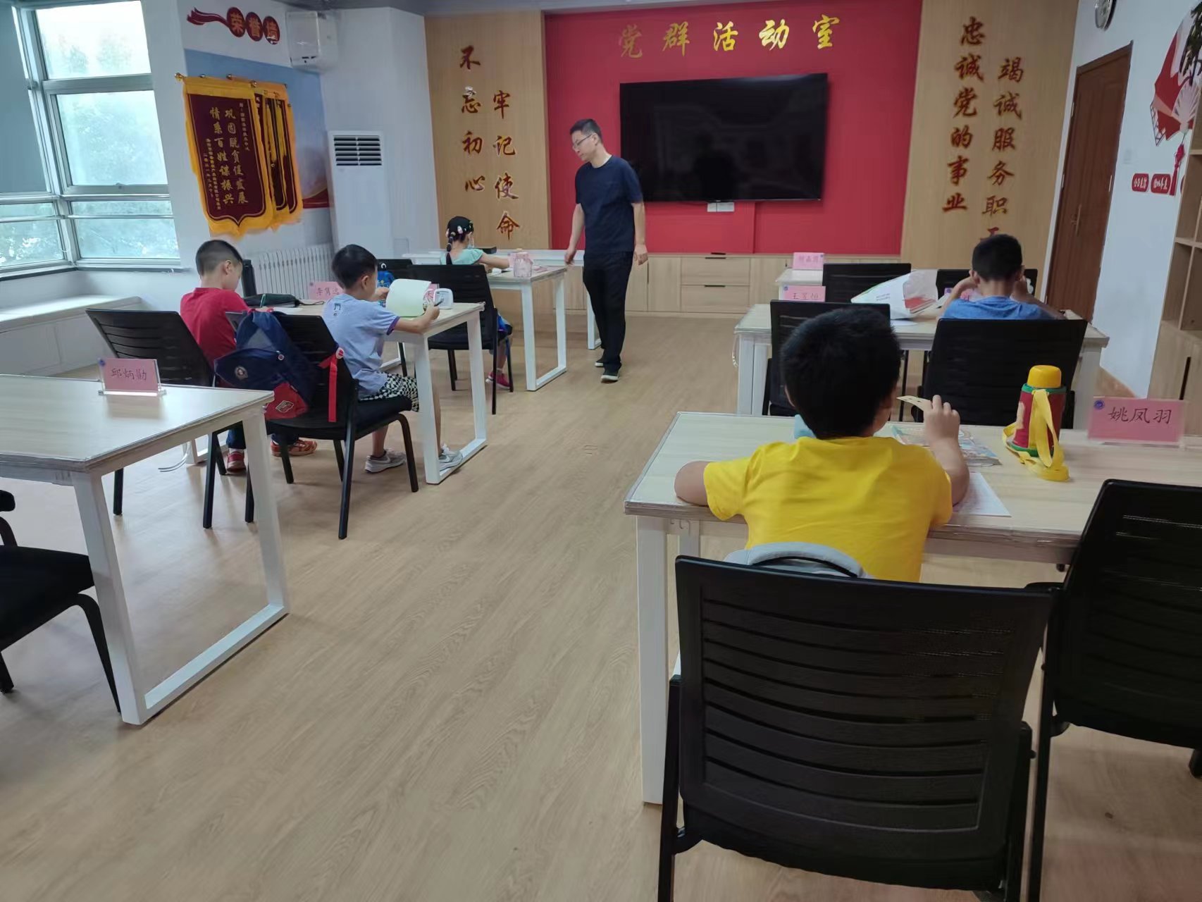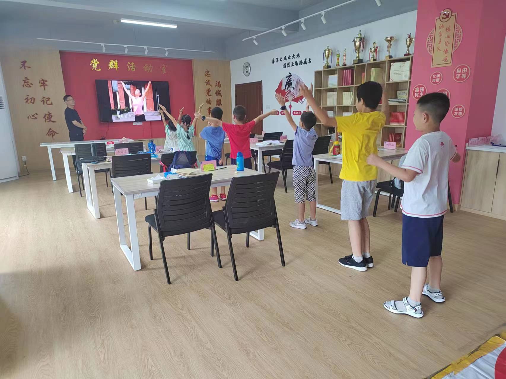 舉辦職工子女托管班是應(yīng)中心干部職工子女寒暑假托管難的需求,推動“我為群眾辦實事”實踐活動常態(tài)化開展的措施之一。為此中心黨委研究決定,建立職工子女寒暑假托管班制度,按照中央有關(guān)文件精神,接收職工子女中小學(xué)一至六年級學(xué)生參加托管班。中心辦公室和黨辦工作人員與子女參加托管班的職工組成臨時家委會,改成:中心黨辦、辦公室、物保部、工會和團委工作人員與子女參加托管班的職工組成臨時家委會。