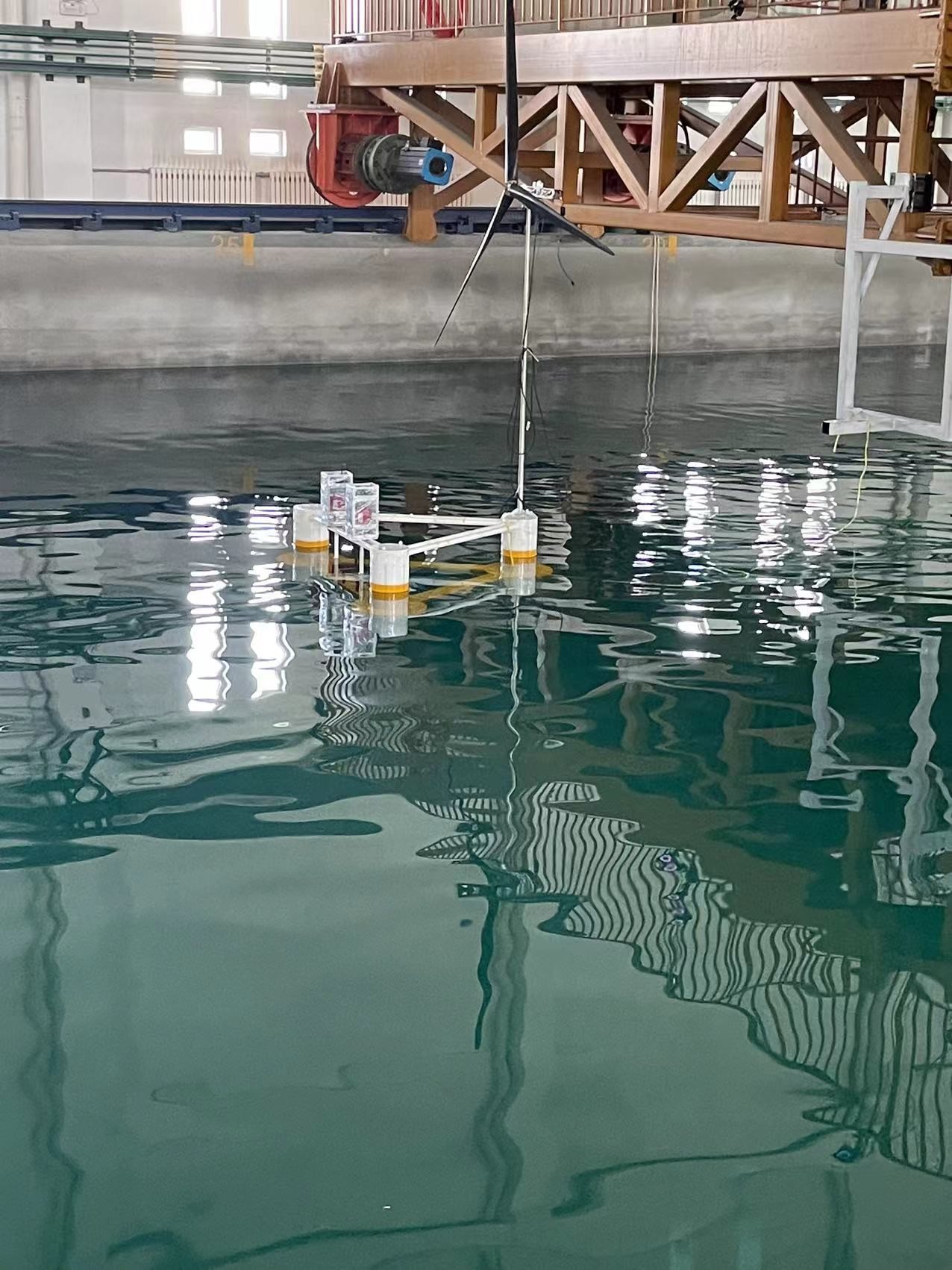 業(yè)務(wù)工作2023年6月19日至7月18日,國家海洋技術(shù)中心海洋動力環(huán)境實驗室,針對中山大學(xué)的“多能聯(lián)合發(fā)電裝置模型”開展了風(fēng)浪流耦合工況的水池試驗工作。在雙方科研人員的共同努力下,完成了從風(fēng)浪流耦合場模擬環(huán)境的搭建,到測量系統(tǒng)的高精度同步測量,再到數(shù)據(jù)處理與分析等工作,順利完成了全部水池試驗內(nèi)容。