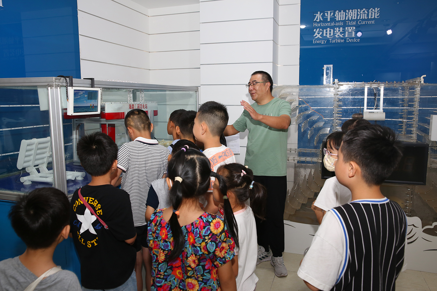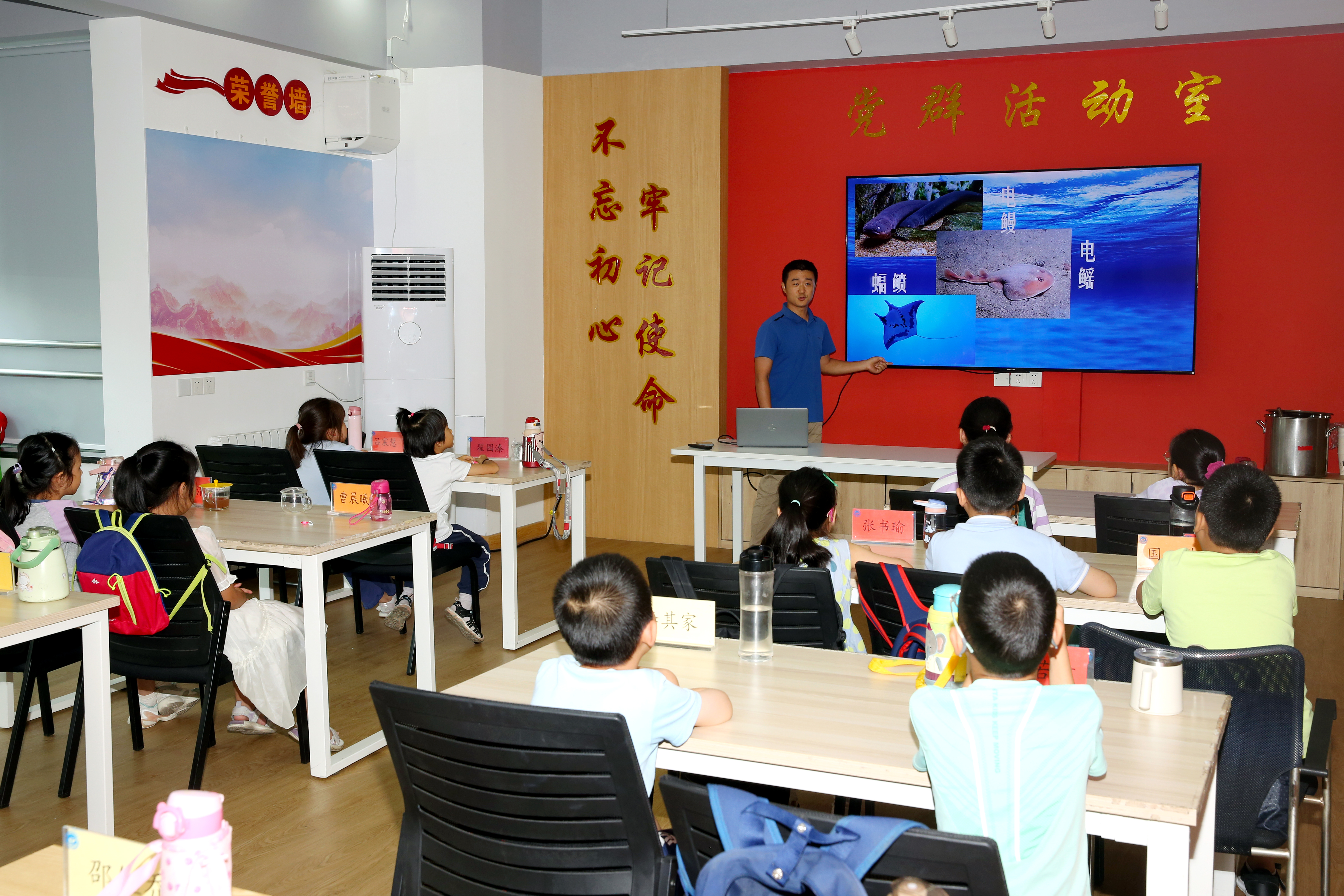 中心作為全國海洋科普教育基地,每年都會面向校園、面向社會開展大量科普工作,這也使得托管班有了“近水樓臺先得月”的優(yōu)勢,班上許多學生家長就曾經(jīng)為不同年齡段的學生講授過海洋領域的各類科學知識,托管班也適時組織學生們到中心海洋能成果展廳、海洋動力環(huán)境實驗室等場所參觀,直觀感受海洋科普。于是,通過講座、參觀等方式引導學生認識海洋、熱愛海洋、保護海洋就成了每期托管班的必修課。除了專業(yè)領域,家長們還各盡所能,把中國歷史、世界地理、硬筆書法、無人機模擬操控等課程搬上課堂,讓孩子們在暑假期間豐富知識體系、培養(yǎng)興趣愛好。工會在暑期組織舉辦文學、朗誦、書法等專家講座時,也會把托管學生納入進來,讓職工和子女共同學習,形成獨特的親子課堂。