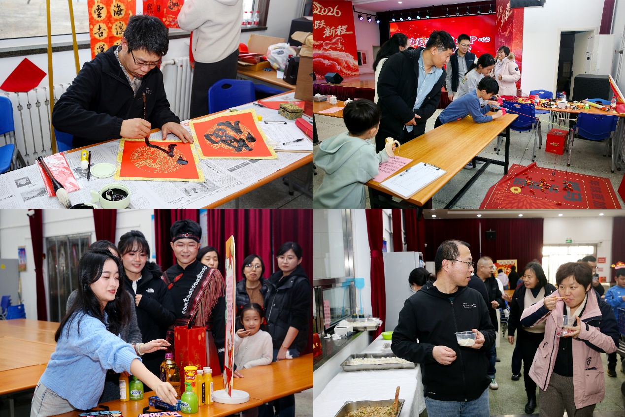 游藝會現場設有傳統文化民俗體驗區,書福送春聯、抓馬游戲、圈中幸運、好運投壺以及品嘗傳統美食都讓職工們感受到濃厚的傳統文化,現場包餃子更是引來大家一試身手。